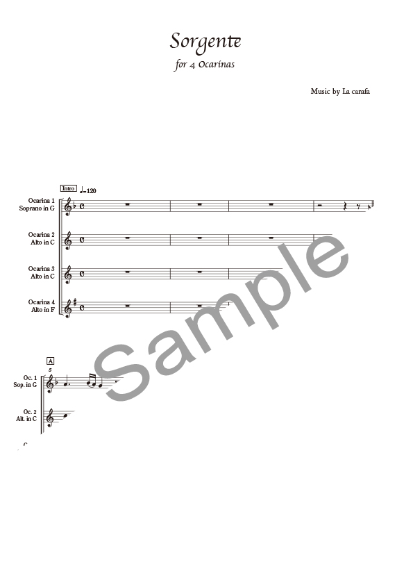 愛と希望と夢を与えてくれる、ラカラファ最初のオリジナル曲です。 オリジナルではフルートパートがありますが、本楽譜ではオカリナのみで編曲され、3重奏 ・4重奏で演奏をしていただけます。